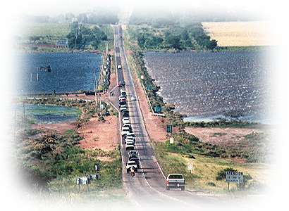 ![]() Escoltados por dos motocicletas de la Policía de La Pampa que nos abrieron el paso, emprendimos un recorrido hacia el centro de la ciudad y luego tomamos la Ruta Nacional 35 hacia General Acha. |