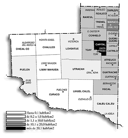 de menor densidad son: Lihuel Calel con 0,05 hab/km2,