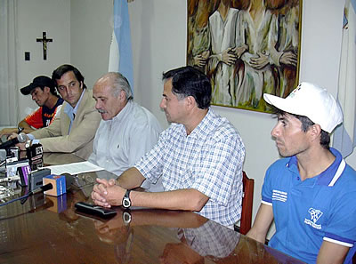 Los anuncios fueron realizados en conferencia de prensa en el despacho del intendente Néstor Alcala, con la presencia del secretario de Acción Social, José Moslares y el director de Deportes, Jorge Arturo, acompañados por los atletas pampeanos Alejandro Giménez y Cristian Alfonsín. |