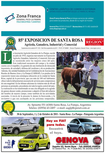 El programa de la “85ª Exposición Agrícola, Ganadera, Industrial, Comercial y de Servicios” que organiza la Asociación Agrícola Ganadera de La Pampa en Santa Rosa, a grandes razgos es: