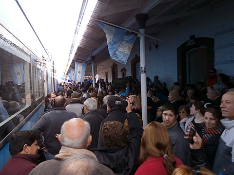 El evento estuvo teñido en algunos aspectos de inicio de campaña política de cara al 2015, no obstante los vecinos en su mayoría, ante la satisfacción del arribo de la formación ferroviaria se abstrajeron del contexto de pancarta, aunque todo pareció indicar que el ministro del Interior y Transporte, Aníbal Florencio Randazzo, cuenta con buena tracción al afecto popular, allí rodeado de una fuerte aglomeración esperó junto al gobernador Oscar Mario Jorge, la venida del tren.