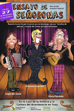 Se trata de un espectáculo de narración musical-teatral sobre un repertorio escrito por mujeres que se despliega con sus “detalles de autoras” a través del humor de estas señoronas en la intimidad de un ensayo. Con Amanda Heguilen, Angie del Santo y Silvia Palumbo.