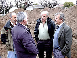 | El ministro de Obras Públicas de la Provincia, Ing. Julio Bargero junto al intendente municipal de Santa Rosa, Ing. Néstor Alcala, recorrieron las obras de Desagües Pluviales de Av. Perón y Remodelación de Av. Circunvalación, en compañía del presidente de Vialidad Provincial, Ing. Jorge Pensotti, el secretario municipal de Obras Públicas, Ing. Jaime Sterin y el encargado de inspección de la obra, Ing José Luís Mouli.