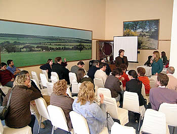 La moderadora en la presentación fue la encargada de prensa, Norma Massara, y el temario oficial fue enumerado por la subseceratria Carmen Bertone, abarcando tres tópicos: Capacitación privada; Desarrollo de Producto Alimentario; y la participación en «Expo Patagonia 2005».