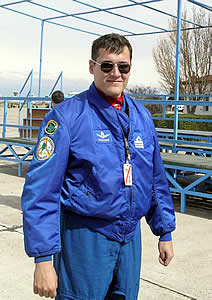 Guillermo Krause, el piloto de la escuadrilla acrobática Cruz del Sur que deleitó a los presentes con sus maniobras a bordo del avion ruso de entrenamiento Sukoi-29AR. |