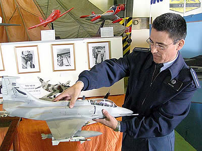 Hugo Díaz del Museo de la V Brigada nos muestra una de las excelentes maquetas realizadas por el artesano local «Pancho» Lara. |