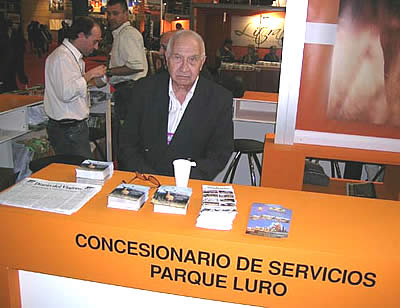 Difícil situación afrontarán los turistas que visiten Parque Luro durante las vacaciones de invierno, ya que la Reserva no dispondrá de servicio gastronómico. En la foto, el representante en Buenos Aires del concesionario pampeano en la ETI durante la promoción de los servicios que ahora no estarán abiertos. |