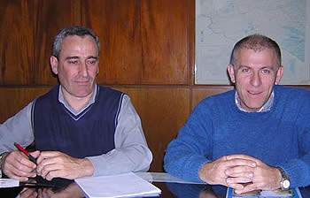 Ing. Domingo Echeveste, jefe de la Dirección Nacional de Vialidad 21º Distrito La Pampa; y el Ing. Jorge Campanile, Jefe de la División Obras de la misma repartición. |