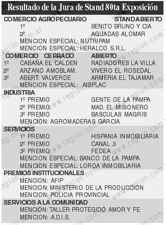 Estuvieron presentes en el palco la vicegobernadora, profesora Norma Durango, los ministros de Gobierno, Justicia y Seguridad, doctor Rodolfo Gazia y de la Producción, doctor Ricardo Morajelo, el intendente municipal local, ingeniero Néstor Alcala, el presidente del Banco de La Pampa, contador Oscar Mario Jorge, el presidente de la entidad organizadora, Pedro González Gomila, el vicepresidente de CRA, Néstor Roulet, entre otras autoridades.