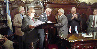El Dr. Augusto Pablo Calmels, Profesor Emérito de la Universidad Nacional de La Pampa, Caballero de la Orden de las Palmas Académicas (Francia), Presidente Honorario del Consejo Profesional de Ciencias Naturales de La Pampa, lleva con ésta, su distinción Nº 137.