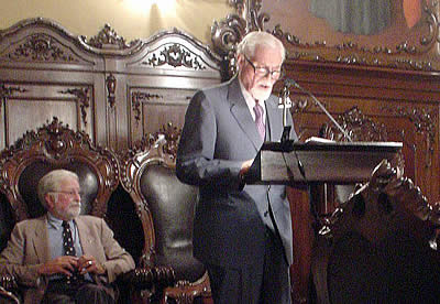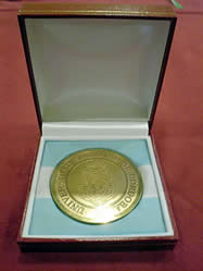 En la foto superior, al momento de recibir el título honorífico en la ciudad de Córdoba. Abajo, la medalla de la UNC, encargada de la designación.