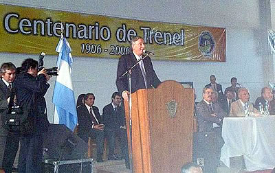 El siguiente es el texto del discurso pronunciado por el Presidente de la Nación, doctor Néstor Kirchner hoy en Trenel. “Es bueno que la Patria toda se entere que existe una localidad en La Pampa que se llama Trenel, esa localidad tiene cien años y que está mantenida por manos callosas por el trabajo, por la lucha, por la solidaridad a pesar por allí del olvido permanente que a veces tiene el poder central y el poder federal sobre la Argentina Federal, vea toda la Argentina y comparta toda la Argentina este cumpleaños al cual adherimos que nos pone felices en estos cien años que cumple esta hermosa localidad de Trenel y que nosotros venimos a compartirlo con todas nuestras fuerzas”.
