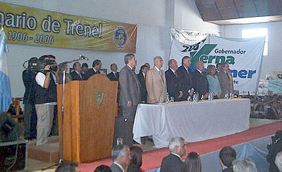 La entonación de las estrofas del Himno Nacional Argentino marcó el comienzo formal de la ceremonia, cuando origllaba el mediodía y dio paso a la lectura y entrega del decreto declarando huésped de honor al presidente Kirchner, de una similar resolución municipal de Trenel y de presentes, entre otros de una obra artística local alusiva al centenario y plaqueta recordatoria.