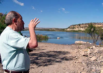 «Una postal que no parece La Pampa» expresó Verna a orillas del gran lago. Once millones de pesos invirtió el Gobierno en este emprendimiento productivo y turístico, donde ya se colocaron 14 mil plantas. |