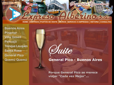 La empresa de servicios ejecutivos de transporte de pasajeros, «Expreso Alberino», puso en funcionamiento su sitio Web en Internet, bajo el dominio: expresoalberino.com