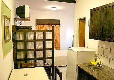Los departamentos monoambientes con baño privado, están equipados con placard, teléfono, tv cable, frigobar, horno microondas, pileta bajo mesada y alacenas.