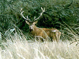 Desde que la especie fuera introducida desde Europa por Don Pedro Olegario Luro a sus extensos campos pampeanos (hoy Reserva Faunística del Parque Luro), el ciervo colorado (Cervus Elaphus) ha ido extendiéndose hacia el sudoeste llegando actualmente a la pre cordillera argentina. En territorio pampeano la especie habita, se desarrolla y cría en campos con vegetación natural y espacios abiertos, implantados con gramíneas y leguminosas: sumándole valor al entorno y el paisaje que tiene estos sitios.