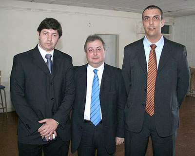 Daniel Itzkovici, gerente comercial; Ariel Picinato, supervisor zonal y Ricardo Gómez, del departamento comercial de la empresa Chevallier, durante la presentación en Santa Rosa.