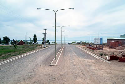 Al momento de esta visita pudimos apreciar la construcción del establecimiento educativo para EGB 1, 2 y 3 en el marco del Programa Nacional 700 Escuelas y la construcción de una estación de servicios que en principio no contará con expendio de GNC y que se prevé que su administración pasará a manos de la empresa petrolera estatal Pampetrol. La Villa cuenta con una población transitoria de 250 personas y dispone de proveeduría, electricidad, agua potable, alumbrado público y forestación y algo fundamental para no aburrirse, señal de Canal 3 por repetidora propia. Dentro del ambicioso y singular proyecto, Casa de Piedra se presenta a futuro como una estampa turística dentro del territorio provincial, por el lugar desde su puesta en marcha la habrían visitado haciendo uso de las instalaciones de camping unos 5.500 turistas, los servicios de infraestructura se incrementarán con el tiempo, con la construcción de un hotel y cabañas. Se trabaja mucho en la adecuación de la playa junto al lago, esto apunta necesariamente a una adecuada prestación de los servicios de costa como la pesca deportiva y los deportes de agua.