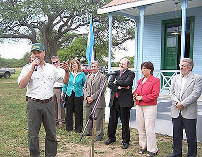 Acompañaron al primer mandatario provincial en el acto, el ministro de Obras y Servicios Públicos, Ing. Julio Bargero, la subsecretaria de Turismo, Prof. Carmen Gómez de Bertone, la arq. Elena Blassi, Directora de Inversiones Turísticas de la Secretaría de Turismo de la Nación, los subsecretarios de Asuntos Agrarios, Dr. Enrique Schmidt y el de Industria y Comercio, Cr. Claudio Gordillo, integrantes de la Cámara de Turismo, de la Asociación Hotelera de La Pampa, de la Comisión de Amigos del Parque Luro, entre otros representantes de instituciones privadas.