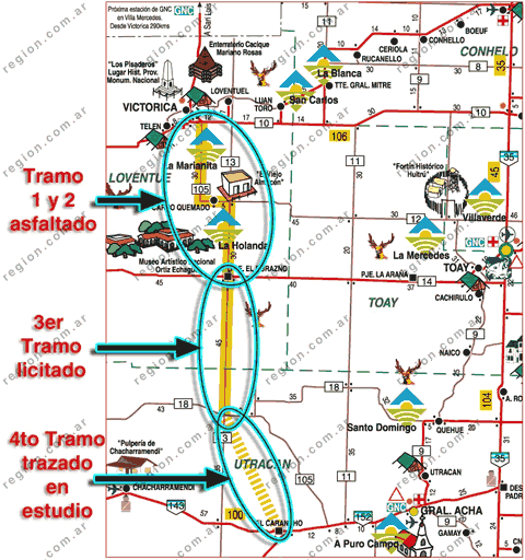 Se trata de la ruta provincial Nº 13, entre la ruta provincial N°14 y la ruta provincial N° 18, para la cual se presentaron 6 ofertas. «Esta ruta es muy importante para trasladar la producción del oeste, -explicó Verna, presente en el acto de apertura de sobres-Se enlaza en un circuito que será usado interprovincialmente por la gente que viaja hacia el Sur, porque terminará uniendo Victorica con El Carancho”.