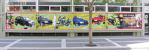 Un inmenso mural de promoción de más de 20 metros cuadrados, sobre las vidrieras del ISS, da cuenta del sorteo extraordinario de este domingo 23, «7ma Navidad de Telebingo». |