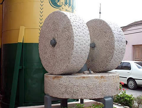El molino de piedra o trapiche, impulsado por caballos, hoy es una pieza de exhibición, pero antaño fue una herramienta fundamental a la hora de «sacarle jugo» a las aceitunas. |