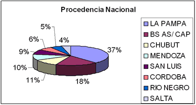 Dentro del porcentaje de La Pampa, Santa Rosa ocupa el 75 % de las visitas, en tanto que General Pico, General Acha, Quemú-Quemú, Eduardo Castex y Lonquimay son las localidades de donde proceden la mayoría de los visitantes pampeanos.