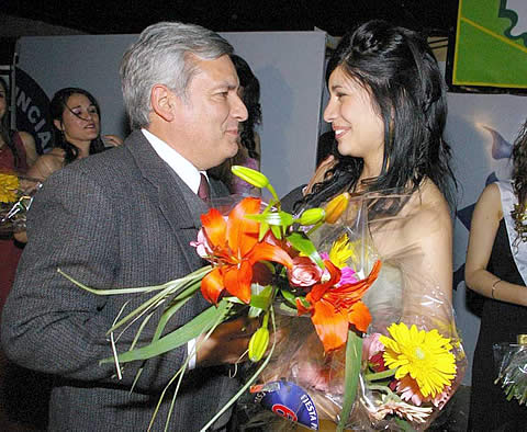 El jefe comunal llegó a la medianoche al gimnasio del Club Estudiantes y subió al escenario a las 0.30 cuando el jurado eligió a la reina, que será la representante pampeana en la próxima edición de la Fiesta Nacional en Jujuy.