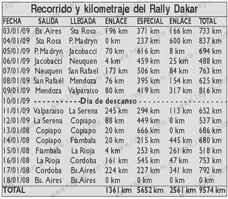 El armado del primer campamento del «Rally Dakar Argentinas-Chile 2009», comenzará el próximo lunes15 de diciembre en el Parque Don Tomás y el jueves 1º de enero se instalarán todos los equipos. Los autos, camiones y motos de competición llegarán a Santa Rosa durante el sábado 3 de enero, tras la partida en Buenos Aires.
