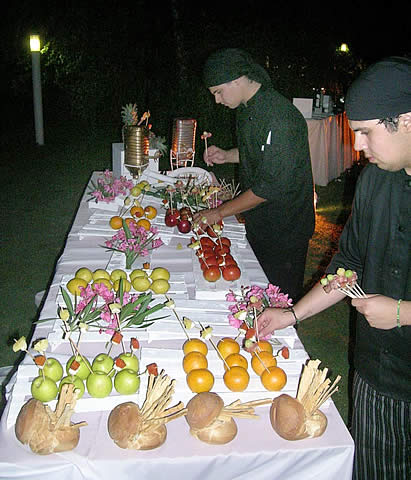 Agustín Mascaró presentó sus productos en 3 islas diferentes, la isla del hielo con un gazpacho helado de tomate y hierbas, la isla de los frutos con brochette de mini vegetales salseados y la isla de los panes caseros con diferentes bruchettas.
