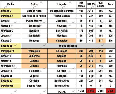 Itinerario Completo de la Carrera Argentina Chile, Kilómetros totales
