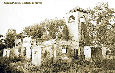 | Foto de las ruinas de la Estancia La Malvina, comparada con una imagen de nuestros días, luego de su recuperación. La casona, hoy sitio turístico-cultural, forma parte de los atractivos del Parque Don Tomás, en Santa Rosa. |