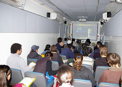 En la dársena de estacionamiento sobre calle Avellaneda frente a la Iglesia Catedral se ubicó el aula trailer con capacidad para 30 personas, donde se dieron charlas alusivas, como así también en el Auditorio del Centro Municipal de Cultura.