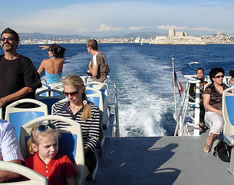 Los paseos en barco desde el «Vieux Port», tiene que estar en su agenda. En el fondo se aprecia la ciudad de Marsella y por delante la «Ile d’If», morada carcelaria del Conde Montecristo en la novela de Alejandro Dumas. |