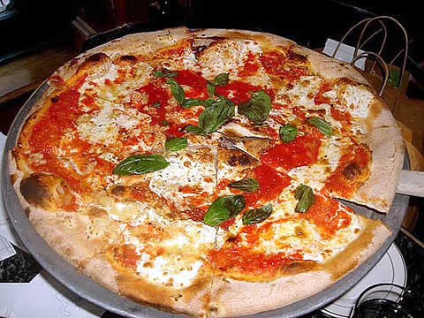 Es la más simple y la más rica: masa de pizza como le guste (fina o gruesa); aceite de oliva; ajo triturado; pomodoro (tomates) cortados en trozos y salteados ligeramente en aceite con ajo y sal; formaggio (queso) muzzarella desmenuzado y parmesano rallado; un poquito de albahaca seca. Después de hacer la masa, agregarle aceite de oliva y sal. Encima la muzzarella, los tomates y la albahaca. Oliva nuevamente, si es extra virgen mejor. Cocinar y al sacar del horno. Cuando esté bien caliente, espolvorear con el parmesano rallado. Ni bien se enfríe un poquito, comerla en porciones con la mano. Buon mangiare...