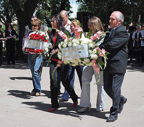 Una comitiva especial integrada por el ingeniero Tebes, la secretaria de Desarrollo Social, María Victoria Alvarez, y los concejales Patricia Testa, Jorge Gaitán, Gabriela Pregno y Silvia Ramos depositó una ofrenda floral al pié del monumento que recuerda al general Eduardo Pico. |