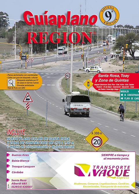 Por primera vez la edición Nº9 se acompaña de un plano color actualizado de grandes dimensiones, donde se dibujó los derivadores y calles colectoras de toda la Av. de Circunvalación, la última gran obra vial dentro de la capital pampeana. El lector notará que seguimos sin colocar flechas del sentido de circulación y esto es asi porque aún falta colocar en muchos puntos nuevos semáforos y de manera permanente se va ensayando y legislando sentidos de circulación nuevos, que desactualizarían este material anual, muy rápidamente.