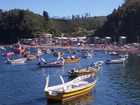 Allí realizamos una excursión embarcados en la lancha “Chilota”, con excelente narración en vivo, que nos permitió visualizar la amplia zona costera habitada, que se ha repuesto del fatídico Tsunami de 2010 y apreciar el gran movimiento comercial marítimo y la industria pesquera.