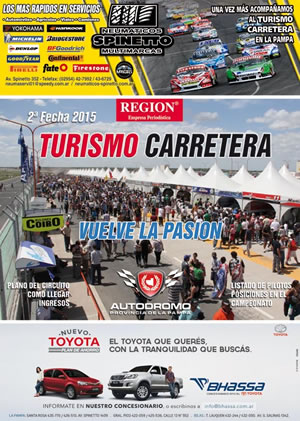 Además como siempre, otra producción de REGION® Empresa Periodística ya está en circulación, es la Revista de la 2da Fecha del Campeonato Argentino 2015 de TC y TC Pista, que se disputa este fin de semana, en super tamaño, a todo color, impresa en papel ilustración, con el listado completo de todos los pilotos, los horarios estimados de las clasificaciones, series y finales, y las posiciones actuales del campeonato.