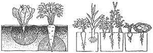espinaca) que extraen nutrientes de distinta profundidad.