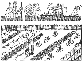 en la cabecera. Se hacen cortes de 5 cm. aproximadamente