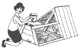restos de comida, pastos, hojas de verduras, semillas